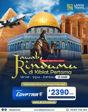 Menelusuri jejak para nabi di Baitul Maqdis, Mesir, dan Yordania dengan perjalanan yang aman, nyaman, dan ramah muslim β¨βοΈ